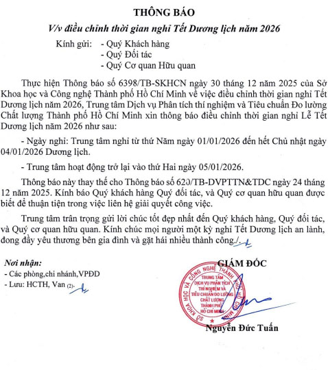 V/v điều chỉnh thời gian nghỉ Tết Dương lịch năm 2026